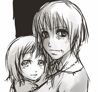 その男の昔。そのころ、私にとって一番大事なものは妹 彼女が幸せなら それでよかった。 彼女が幸せになるのを ずっと祈っていた。 そう 祈っていたのに ++++++++++++++ レジアスとリフェ(フェリア) 幼少時代 自分はボッコボコにされても 妹だけは守ってたらしです。 |